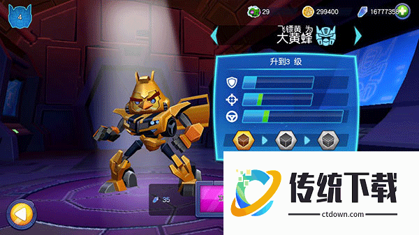 要问跑车哪家强?雪佛兰科迈罗的代表大黄蜂绝对给大家的印象最深刻。升级他会大幅度增加武器和车辆能量,前期我们就是需要高攻击来快速通关,快速用金币升到3级赚取绿色猪头。