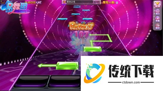 经典模式经典模式主要是以右手为主左手为辅,通过右手来控制舞步的方向键,当节拍器中的小球移动到闪烁区域进入最佳打击点时,左手来打节奏获取得分。需要尽可能多地打击出Perfect判定,累计连P数,从而获得更高的分数不同难度和速度的歌曲,舞步的LV是会逐渐递增,舞步的方向键数量也会不断增加,最多会出现9个方向键。其中还会出现Final!!击中后可以进入ShowTime,得分会更高哦!