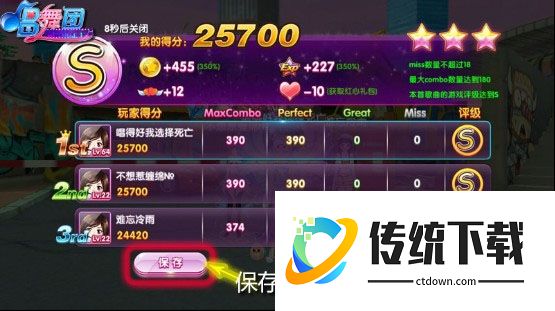 1、游戏含有pk和闯关系统,还可以查看歌曲的世界排名。
