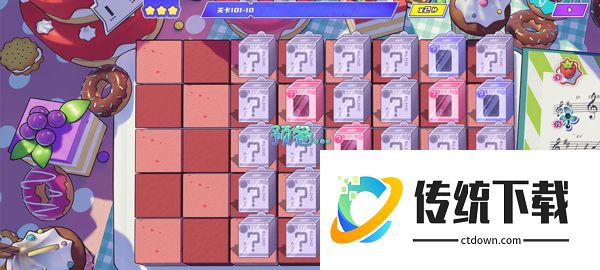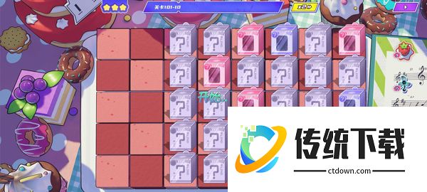 4、个人建议开局可以先把五个粉盒子分别放第一排,五个全放,再从最后一排开始点盒子