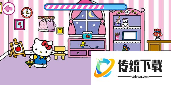 6、选择之后会进入到一个新的场景,随意点击场景内的任何玩具给凯蒂猫玩,使得最上方的【进度条】变满。