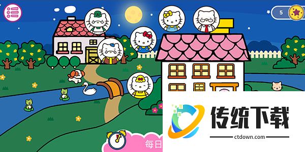 凯蒂猫晚安是一款比较新颖的休闲益智类题材游戏,让孩子帮助凯蒂猫入睡,只需要点击屏幕即可,玩家可以在这里和孩子们一起做任务,在这里玩家将和凯蒂猫一起玩耍,轻快的音乐背景,超多故事可以选择,全部采用的是以卡通风格来呈现,与此同时还配置有技术专业的语音提示。