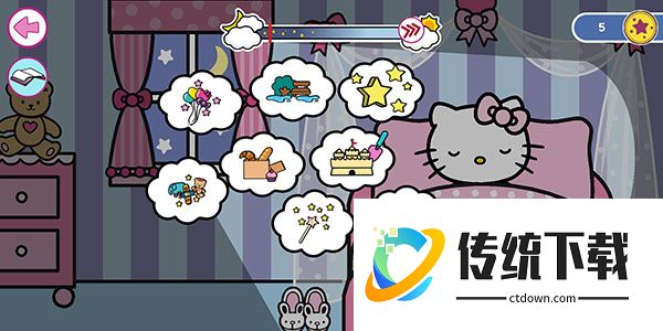 10、凯蒂猫已经睡着了,但是有许多【梦境】会以气泡显示出来,随意点击一个就可以开始游玩梦境。