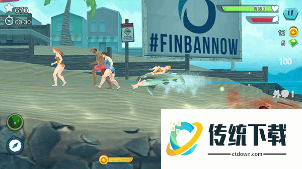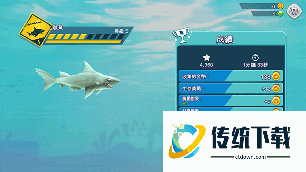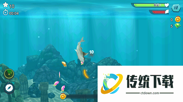 3、熟悉操作后,玩家将控制鲨鱼在海洋中进行捕食;