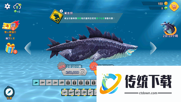 6、获得的奖励你可以用来解锁各种类型的鲨鱼;