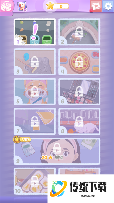 5、成就体系激励探索:每完成一个关卡,玩家需确保房间整洁度达标才能解锁新场景。这种设计激发探索欲,促使玩家持续挑战更高难度关卡,形成良性循环。
