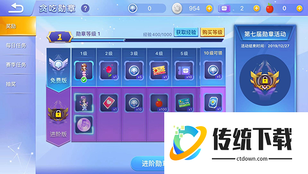 3、贪吃勋章。这是等级制度的,每升一级就会获得不同的奖励,大家可以在“每日任务”中去完成任务,以此来获得经验从而升级。