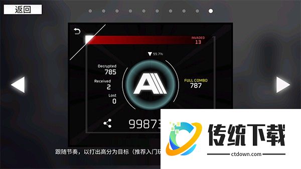 跟随节奏,以打出高分为目标(推荐入门玩家从AWAKEN难度开始游玩)。