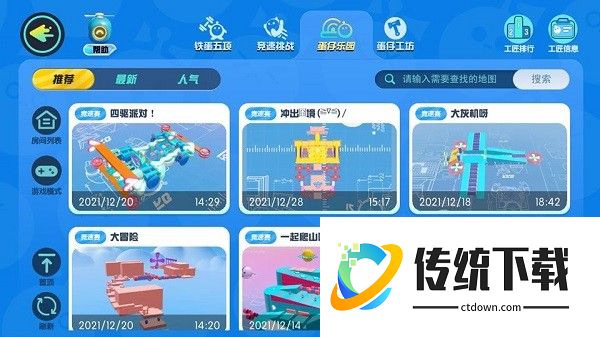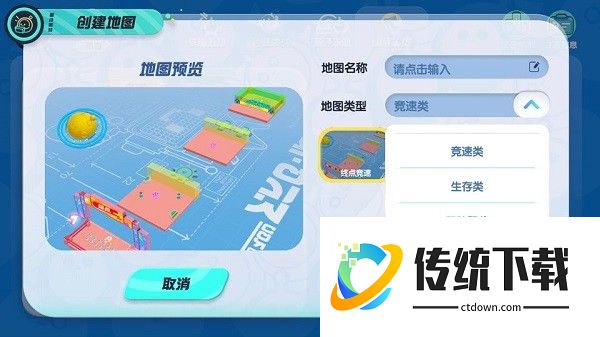 ▲地图类型:分类下可以选择各种模板,包含竞速赛、生存赛、积分赛等模式,操作简单,不怕无从下手!