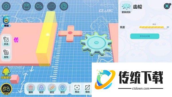 【机关组件】的详情界面中可以调整该组件的运动及其他属性参数,不同的机关会有不同的参数可以调整(比如齿轮可以调整转速)